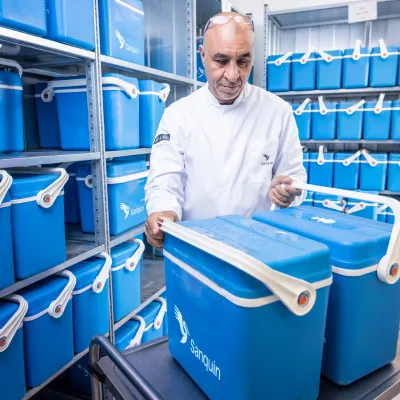 Op de afdeling Uitgifte van Sanquin komen de bestellingen van ziekenhuizen binnen voor bloedproducten. Naast standaard leveringen om de voorraden in de ziekenhuizen op peil te houden, levert Uitgifte ook bloedproducten op maat, voor specifieke patiënten. Dag én nacht. Want veilig en passend bloed moet altijd beschikbaar zijn.