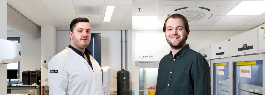 Als pioniers zijn Pieter Langerhorst en Wouter Verhaar een zeer bijzonder traject aangegaan. Langerhorst is postdoctoraal onderzoeker bij Moleculaire Hematologie van Sanquin en Verhaar arts-onderzoeker bij de afdeling Hematologie van Amsterdam UMC. Nooit eerder hebben wetenschappers zich gericht op de eiwitprofielen in plasma van patiënten met de ziekte van Waldenström. 'Alles wat we vinden, is nieuw. Dat maakt het zowel moeilijk, interessant als spannend,’ zegt Langerhorst.