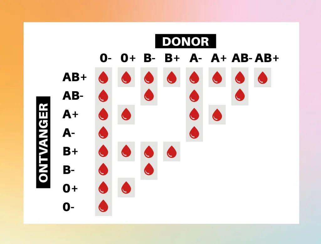 In het overzicht hierboven zie je wie welke bloedgroep kan ontvangen.