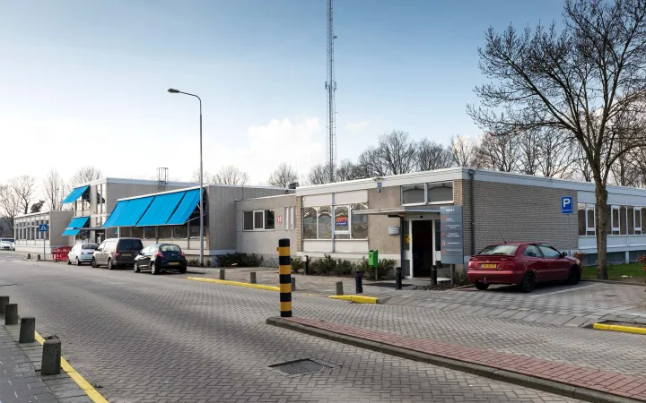 Gratis parkeren kan voor het gebouw aan de straatkant of achter het gebouw op het parkeerterrein.