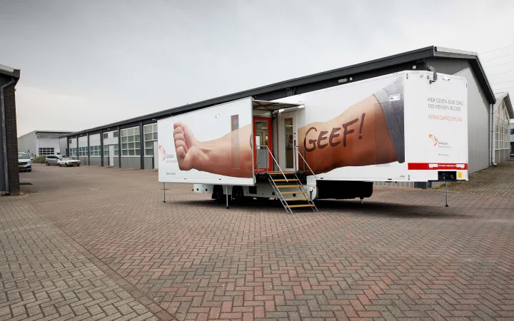 Een mobiele locatie is een Bloedbank op wielen die er niet altijd staat.
