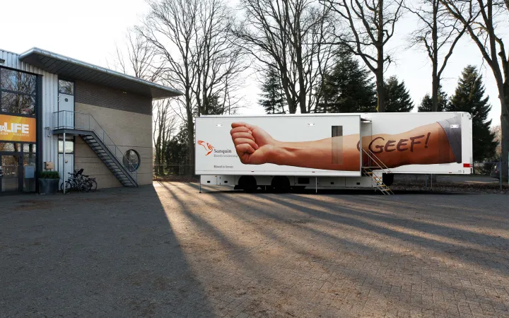 Een mobiele locatie is een Bloedbank op wielen die er niet altijd staat..