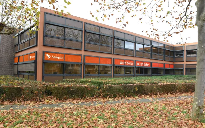 De ingang zit bij de parkeerplaats aan de achterkant van het pand.